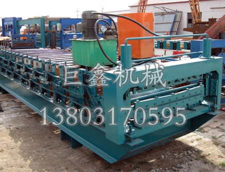 840-900雙層彩鋼壓瓦機(jī)由放料、成型、后成型切割組成,所生產(chǎn)的產(chǎn)品外觀平整美麗、漆紋均勻、、,廣泛應(yīng)用于工業(yè)民用建筑,如廠房、倉庫、機(jī)車庫、飛機(jī)庫、體育館、展覽館、影劇院等房面和墻體。其組成部分包括:整機(jī)、PLC電腦控制系統(tǒng)、液壓泵站系統(tǒng)、全自動后剪切系統(tǒng)。